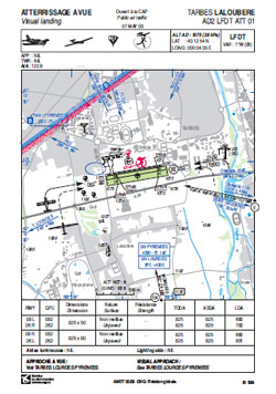 LFDT - TARBES LALOUBERE Cliquez sur la carte ci contre pour télécharger la carte AVC TARBES LALOUBERE Source lien direct https://www.sia.aviation-civile.gouv.fr |